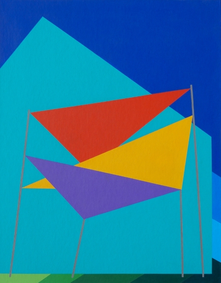 Miller writes "'Home Is Where the Heart Is' has been attributed to the first-century Roman author, naturalist, and philosopher Pliny the Elder. My husband Gary and I purchased a house nine years ago. Although the house was built in the 50s, the concept of owning a home was new to us. Our soon-to-be dwelling needed remodeling and tender loving care, which became our focus for six intensive months. Sometime after we settled in, I ran across a book called House as a Mirror of Self by Clare Cooper Marcus. 'This is a book about people and their homes and the subtle bonds of feeling we experience with dwellings past and present.' Henceforth I began a new adventure as an artist, an adventure in making paintings of houses using a contemporary format. In this body of work, with the emphasis on house and home, I have chosen to use hard-edge minimalist painting, with simplification of form that is influenced in part by my Scandinavian heritage and the philosophy that 'less is more.'